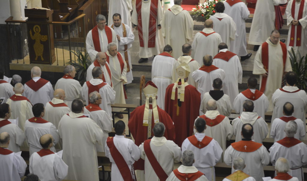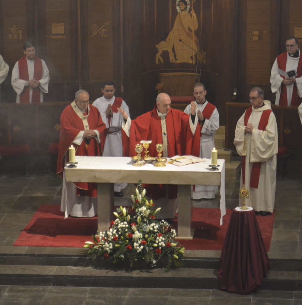 La mañana comenzó con la celebración de la Eucaristía a las 11:30 h, en la que participaron el Arzobispo de Oviedo, Mons. Jesús Sanz Montes, y el Obispo de Santander, Mons. Arturo Pablo Ros Murgadas, acompañados por los equipos formativos de ambos seminarios.